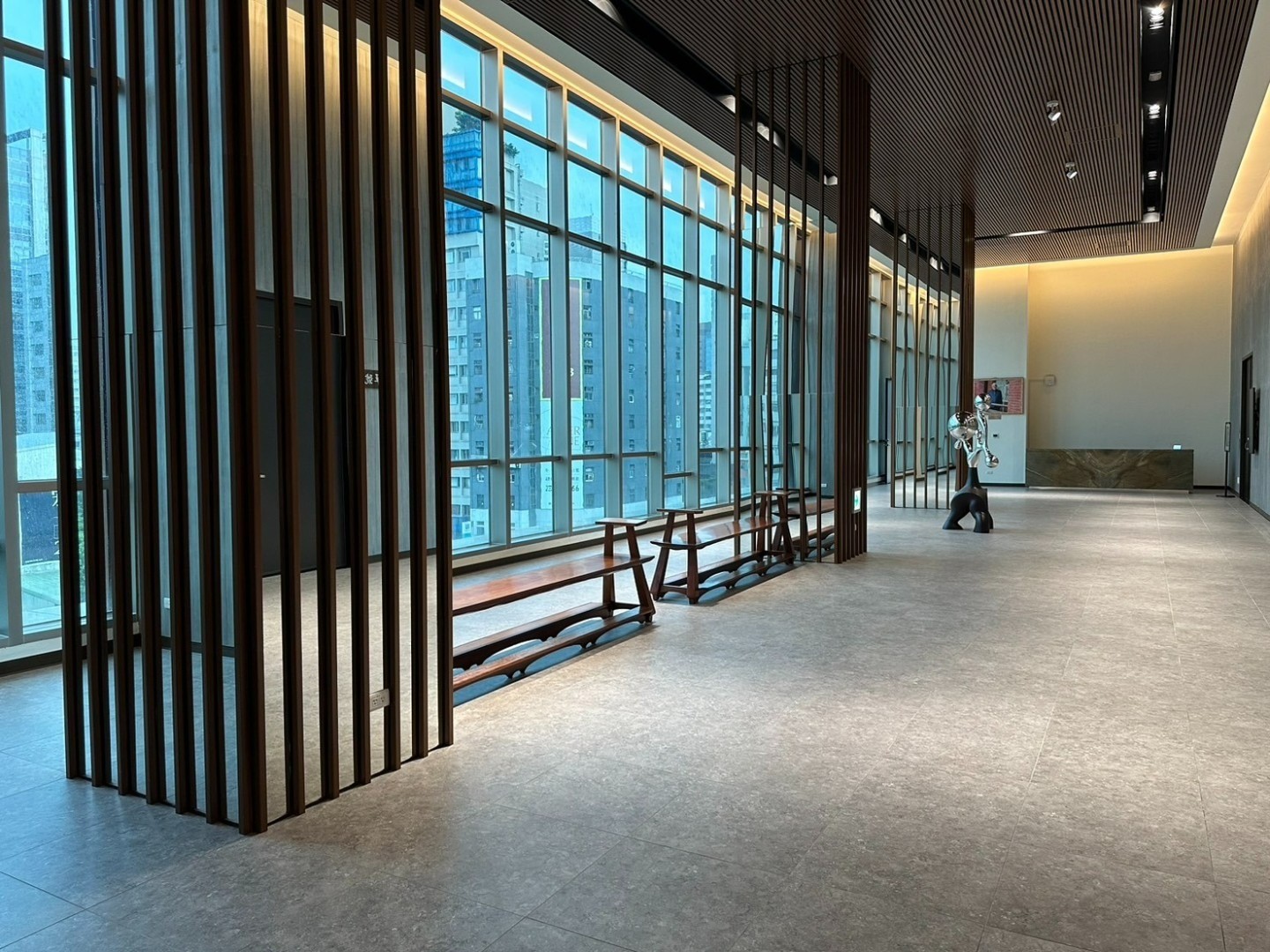 以 12 層工序,手工塗層後製用木紋板壓印,呈現自然木紋紋理的清水模牆面(包含:牆面瑕疵整理剷平 - 基面研磨 - 基面修補 - 底層塗佈 - 再研磨修飾 - 水泥粉塗佈 - 押花 - 多重面漆塗佈)